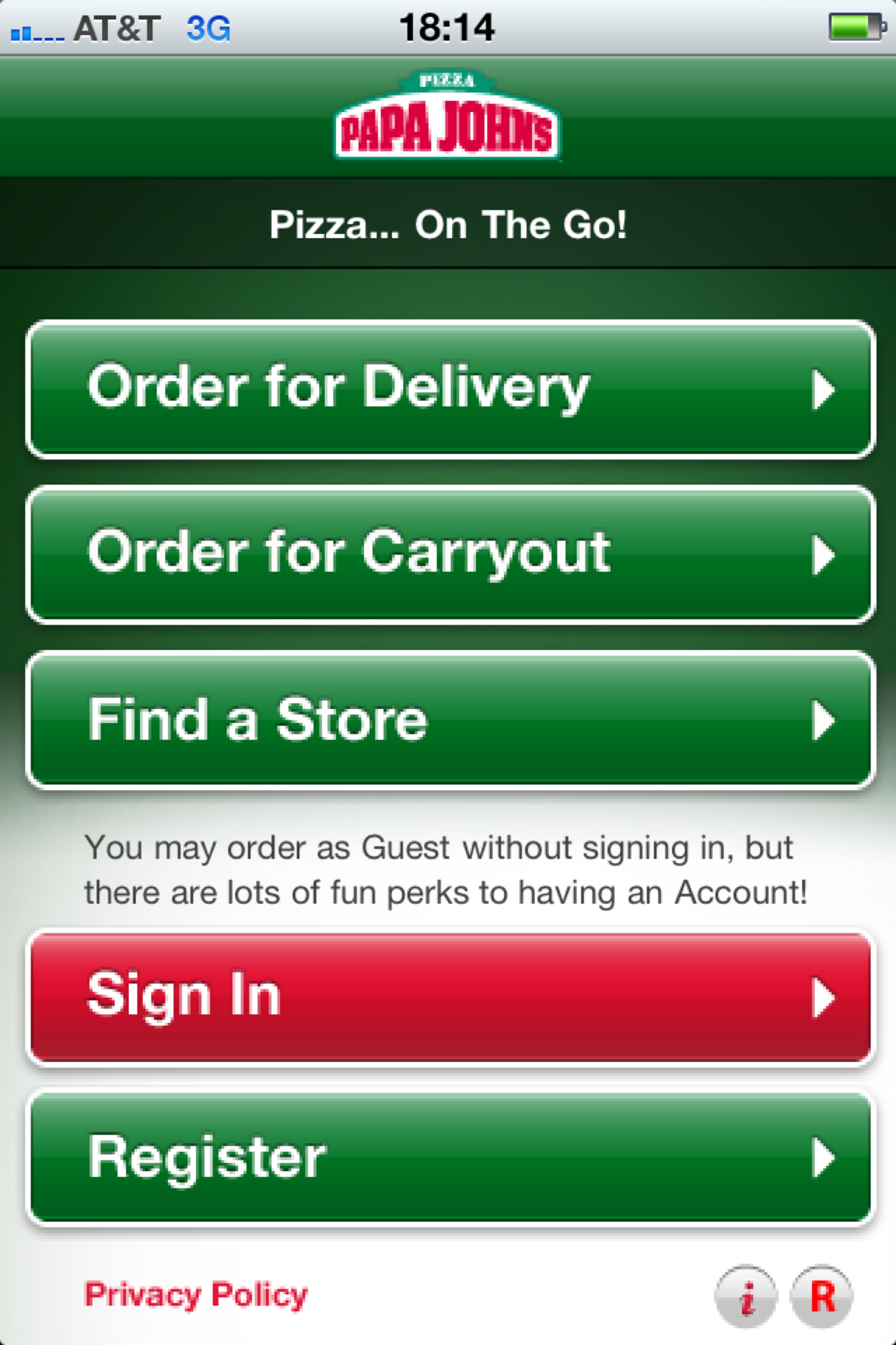 I just ordered a pizza using Papa Johns iPhone application. Only a couple of things were confusing/buggy during the order process.