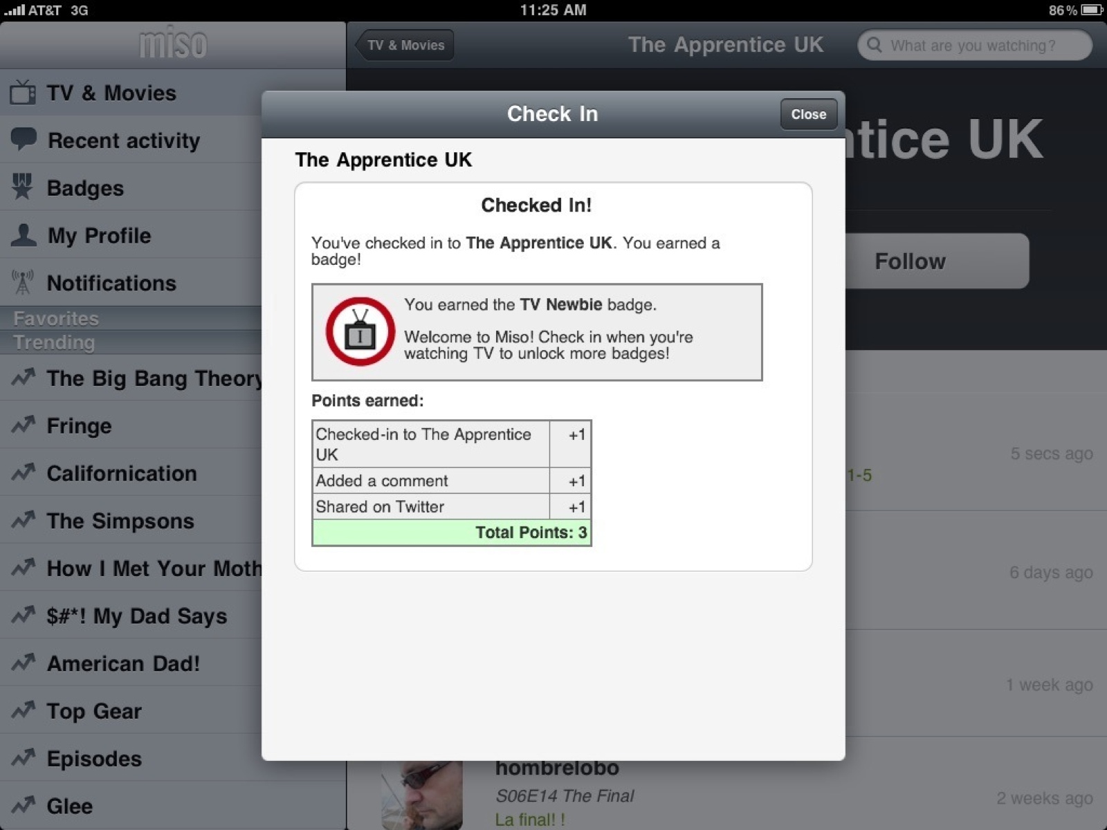 Check in to show and movies you watch to earn badges.