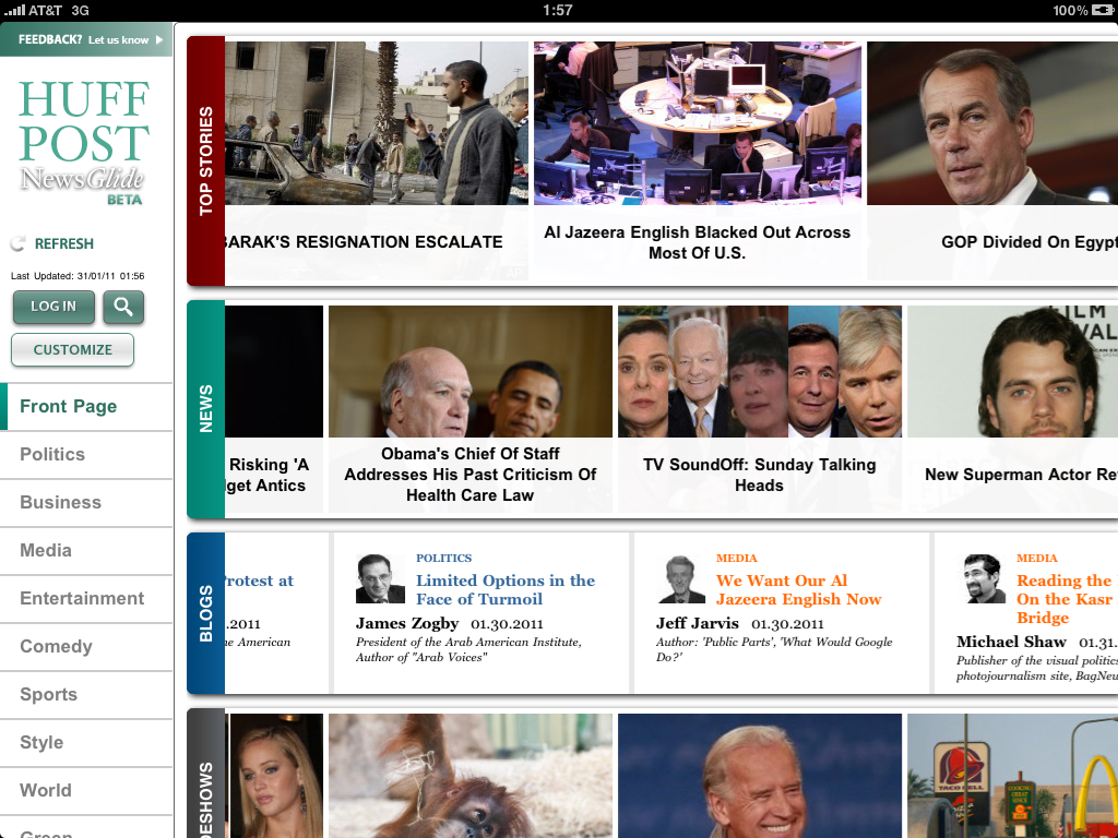 Huffington Post iPad application synchronized scrolling in action.