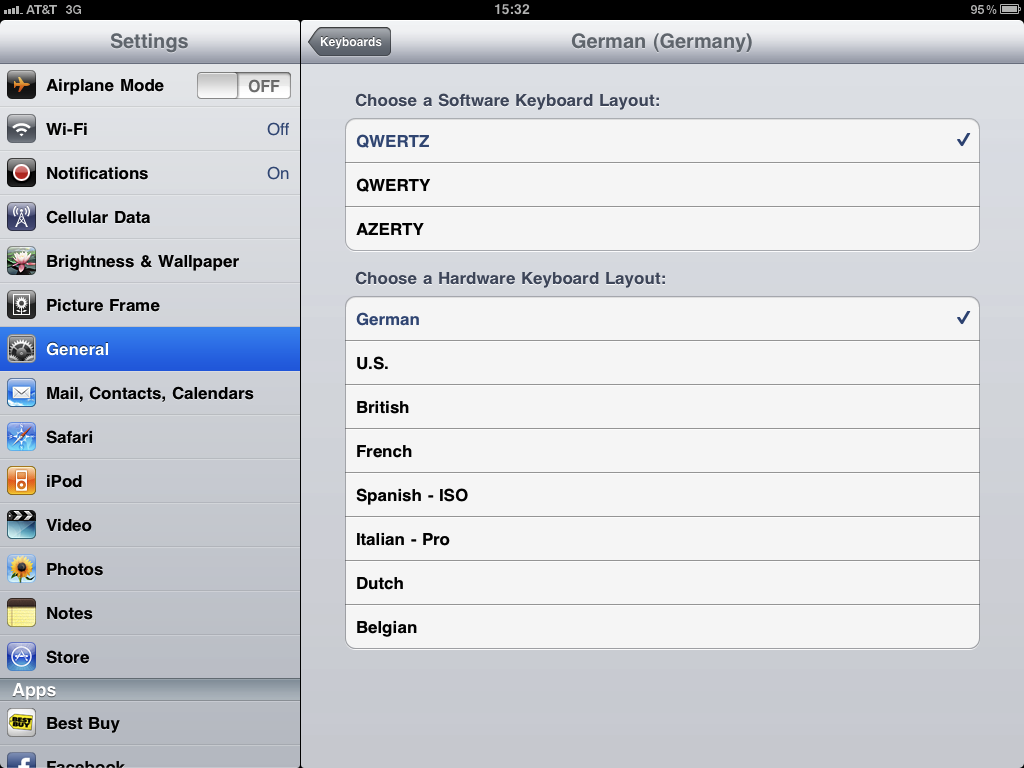 German keyboard options.