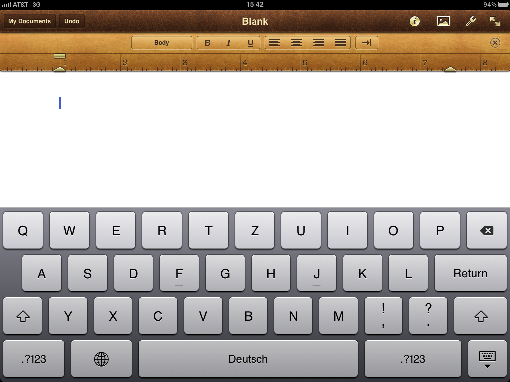 German layout in use. After selecting the layout, the name of the current language will be briefly shown on the space bar.
