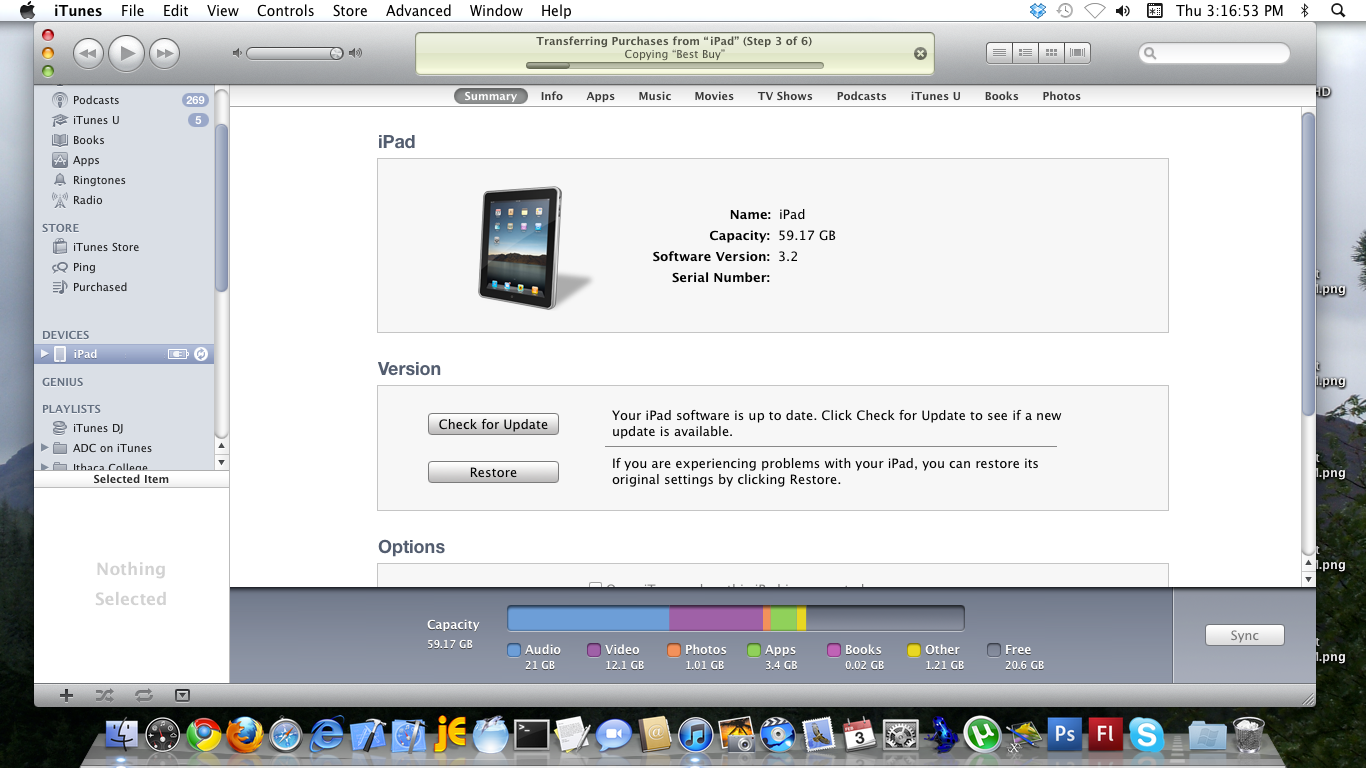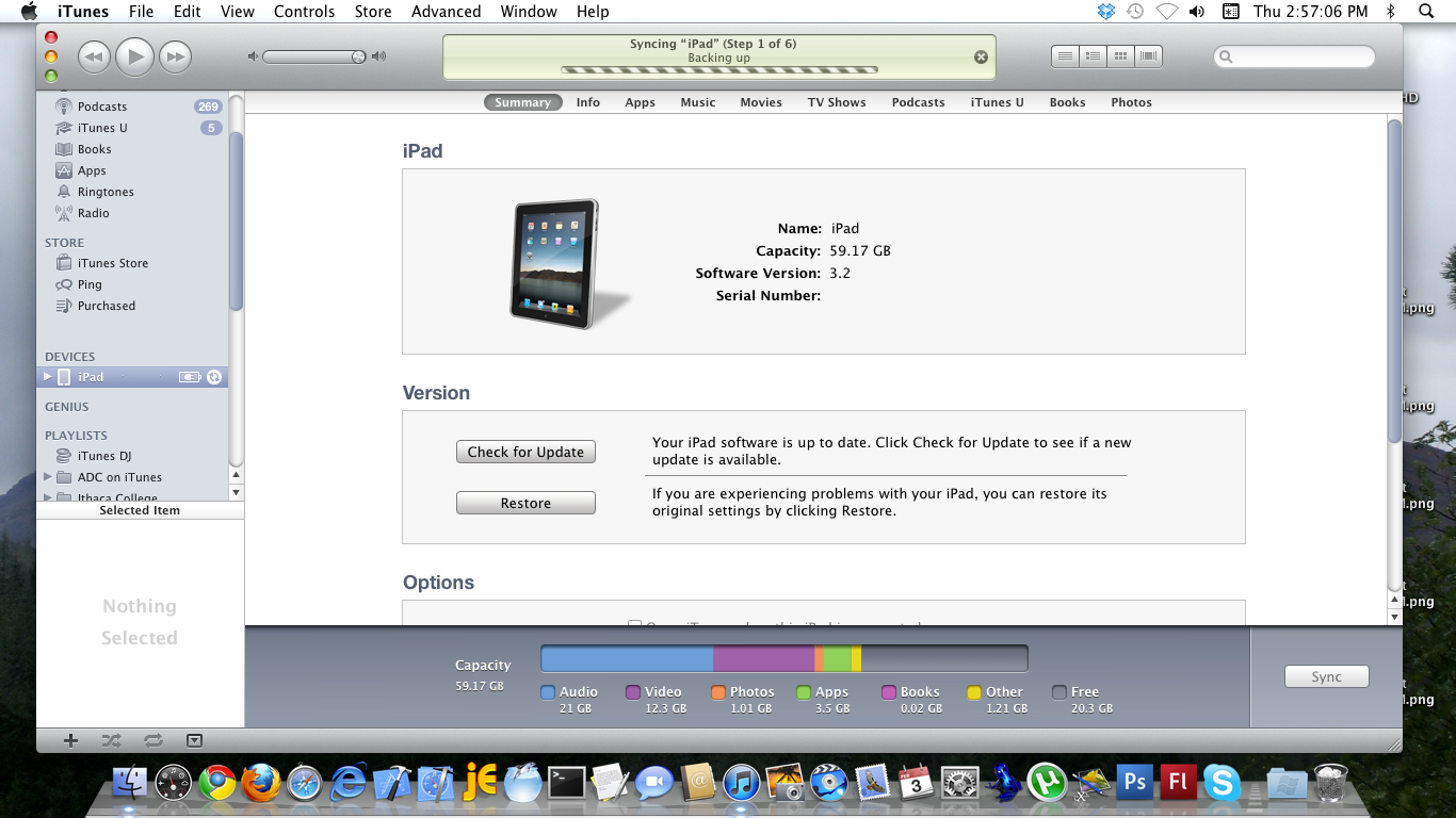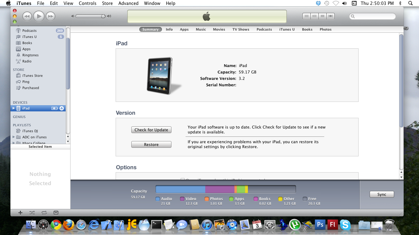 This screenshot shows the summary tab, with the iOS version prominently displayed in the section at the centre of the screen. This image shows an iPad running Software Version 3.2, so it most definitively needs an update to version 4.2 :