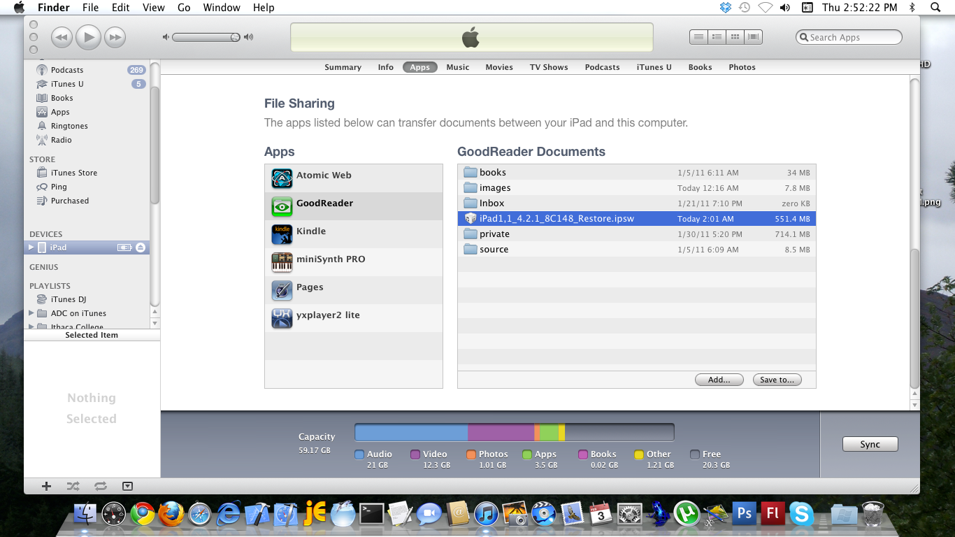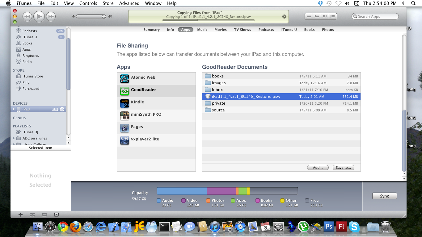In the last part of our tutorial we left off with our full iOS file downloaded and residing in GoodReader’s My Documents folder. Today we will copy this huge file to our Mac, then backup our iPad before we update iOS.