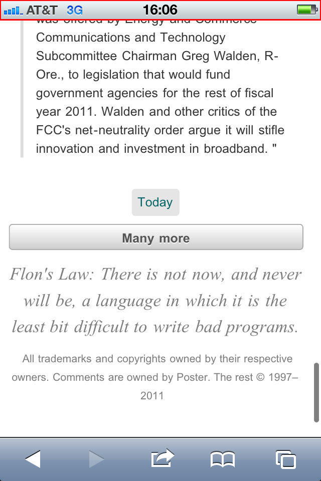 Safari bottom of a web page, note the position of the scroll indicator at bottom right.