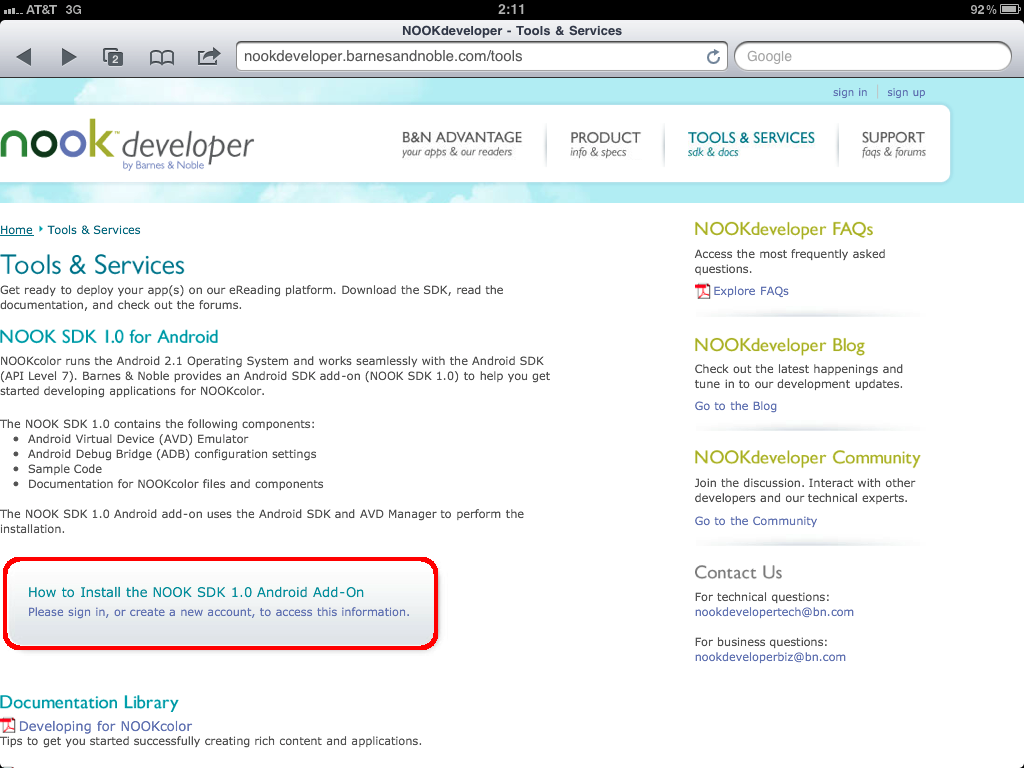 After joining it appeared that Barnes & Noble inexplicably wants you to sign in again to find out how to install the tools: