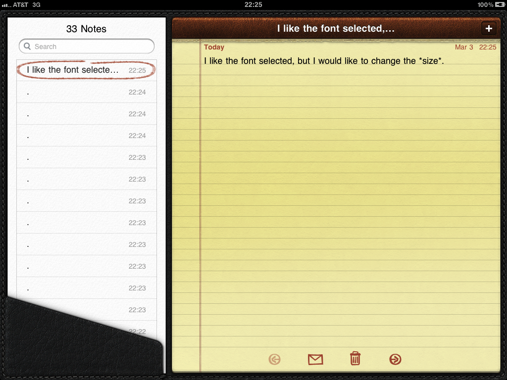 Example of font size of text in Notes.