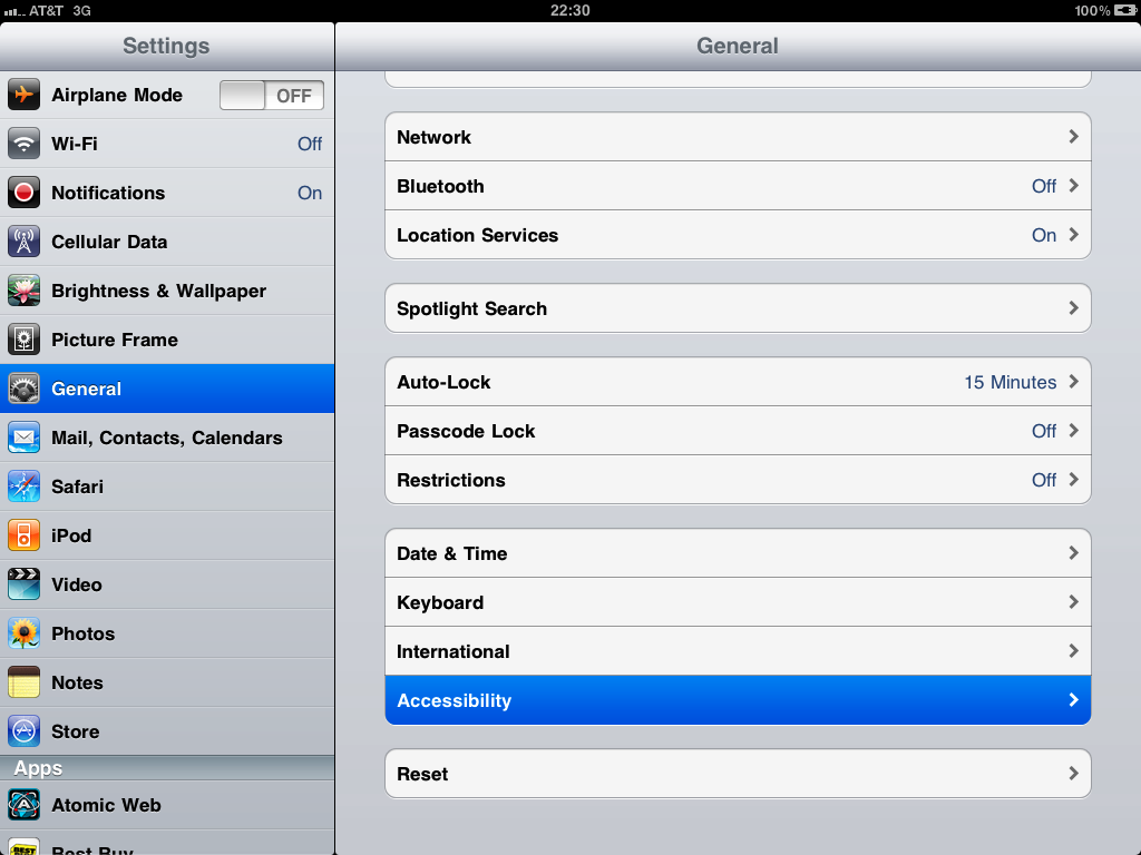 Settings app, General, Accessibility.