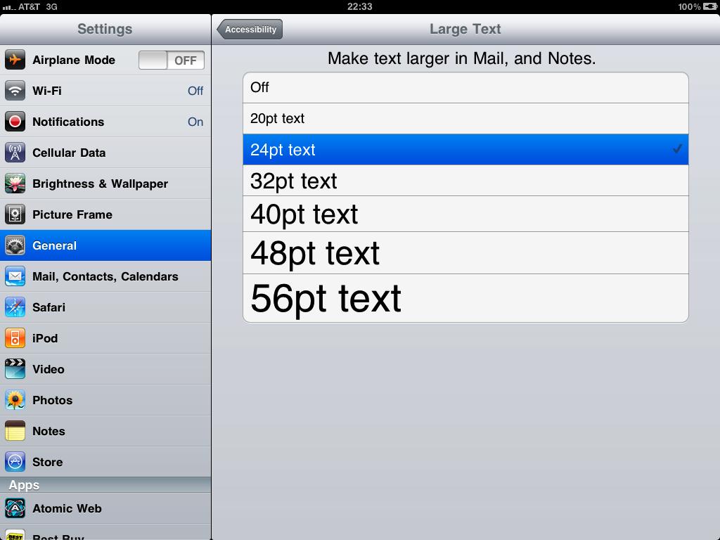 A tick mark (check mark) marks the current selected font size.