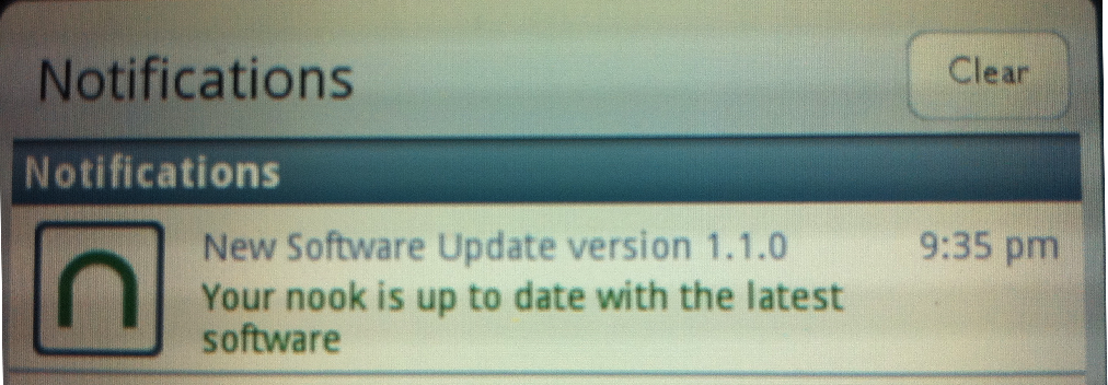 Message displayed after ∩ button pressed. The text reads “New Software Update version 1.1.0.”