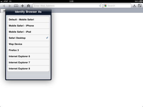 Open Settings and tap Identify Browser As: