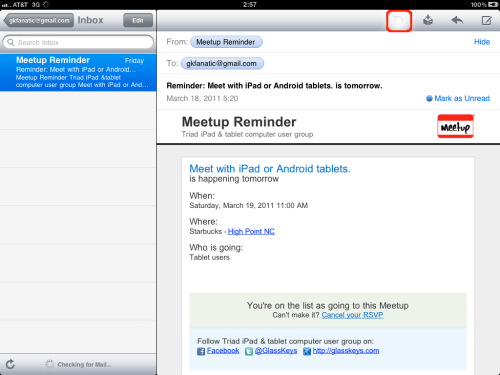 Close Atomic Web Browser after folder(s) have been created and open the Mail application on your iPad or iPhone: