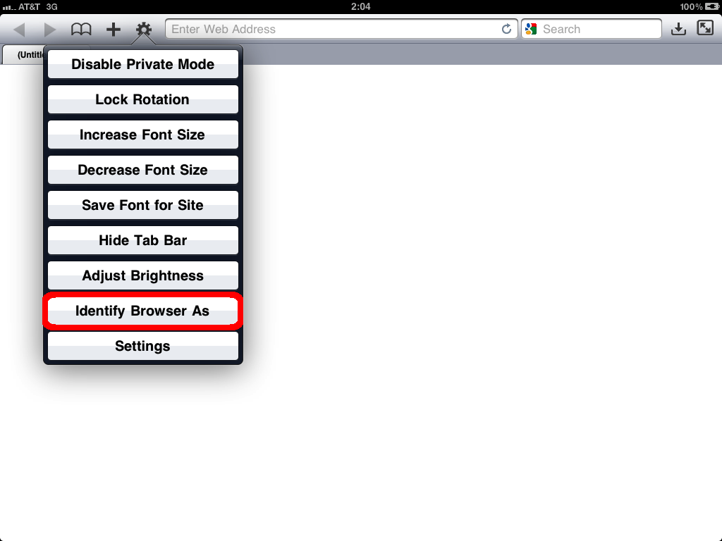 Open Settings and tap Identify Browser As: