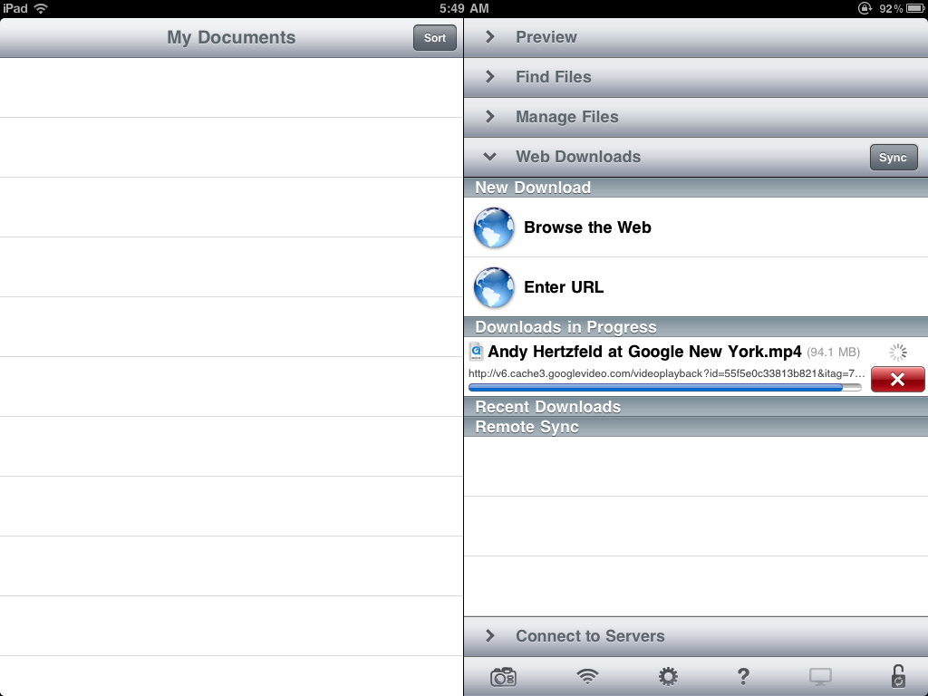 The blue bar in the Downloads in Progress section indicates download amount remaining.