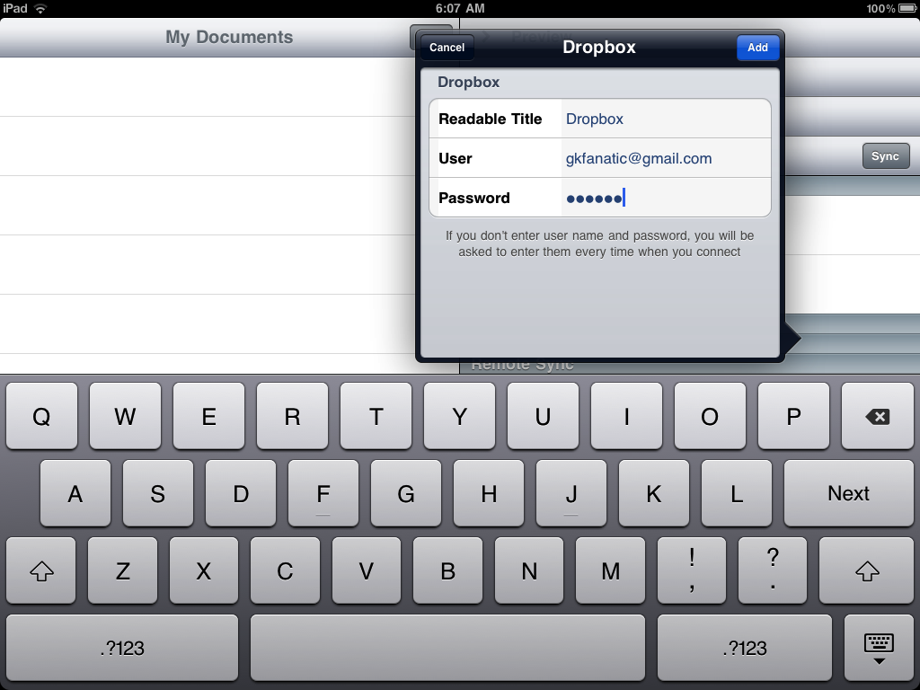 Enter Dropbox login credentials.