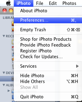After iPhoto opens, select the Preferences… option under the iPhoto menu.