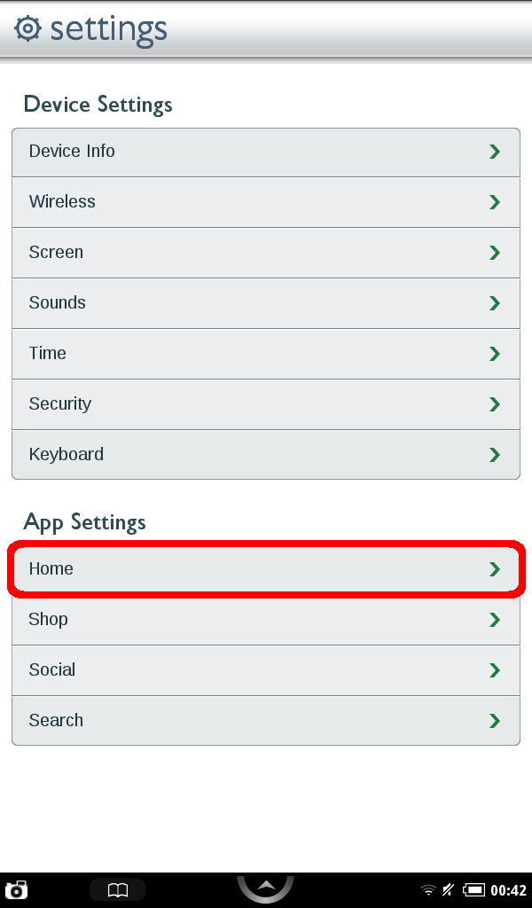 Tap the Home button found under App Settings on the Settings screen.