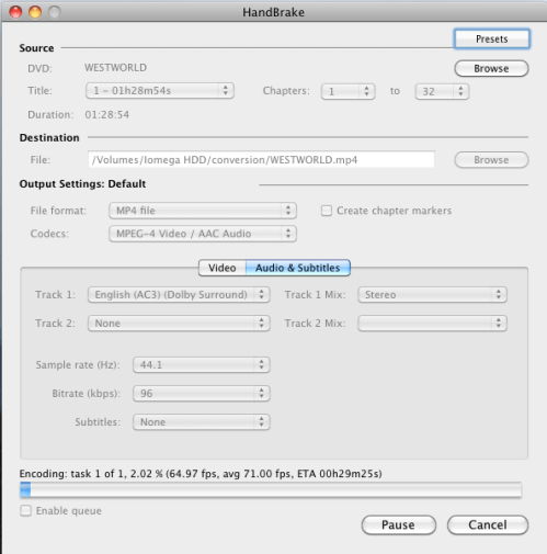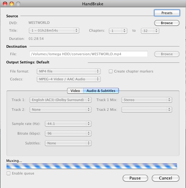 A window will display progress. Generally, converted movies will be 700MB and upwards in size.