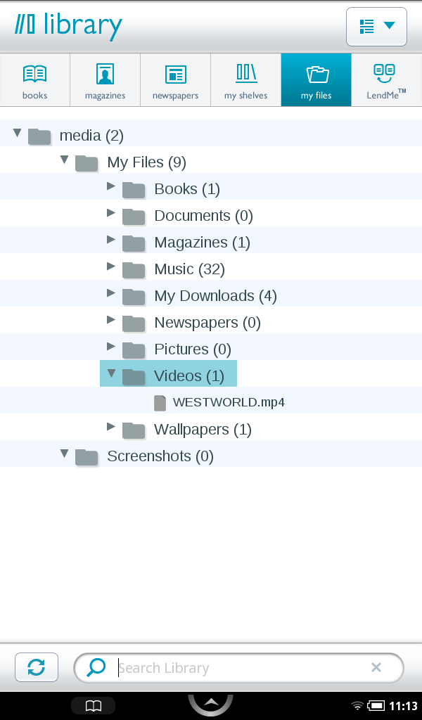 Tap the movie name to watch. NOTE: Occasionally the Nook will tell you it is unable to display the movie, ignore this warning and tap the movie file again to play.