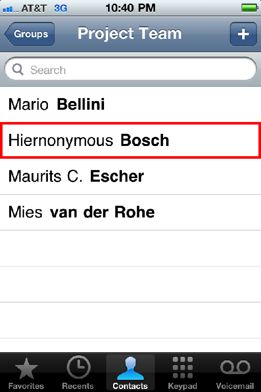 Tap the new group name, then select a contact to view details.