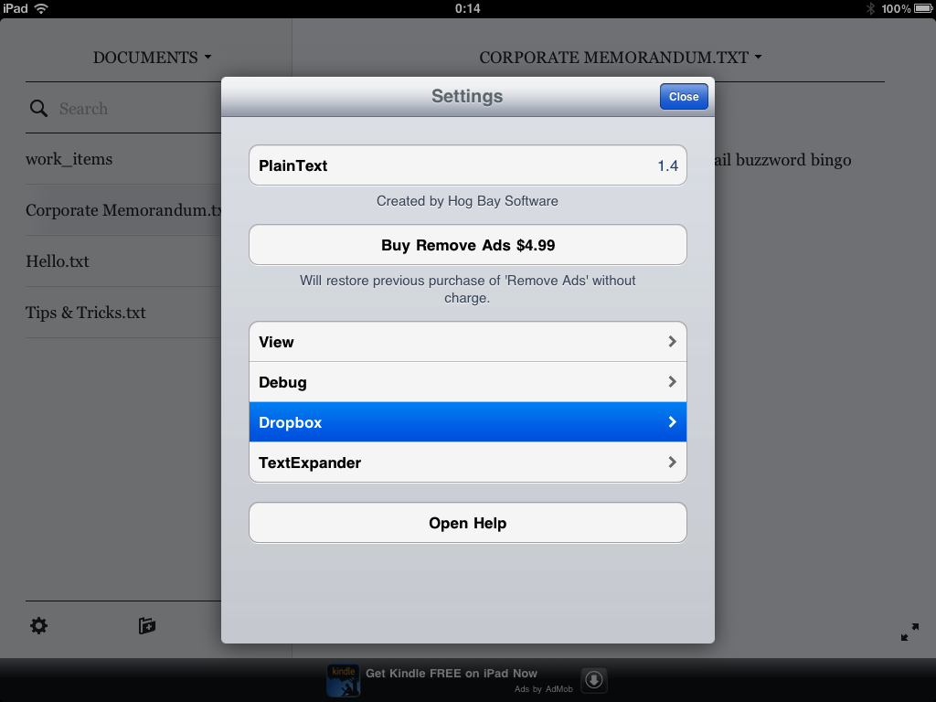 Selecting DropBox.