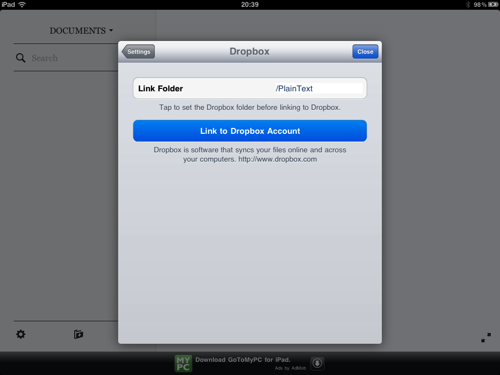 Link to DropBox account. The /PlainText folder will be created in DropBox after linking account.