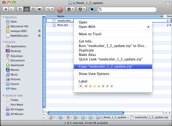 After downloading update file, select copy.