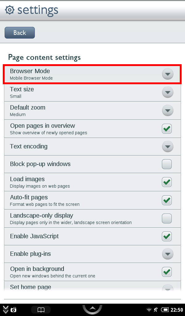 Tap Browser Mode only if the browser is in Mobile Browser Mode.