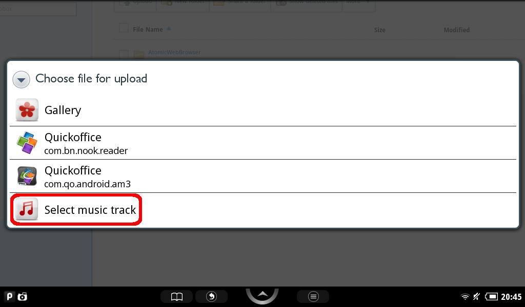 Todays tutorial will demonstrate how to use Dropbox with the Nook Color. Although there is not a dedicated Dropbox application for the Nook Color yet, there is a way to use Dropbox via a web interface. There are limitations though, for starters the Nook Color is fairly “locked down” and will permit uploads of Gallery images, music tracks and QuickOffice documents, Although all downloads appear to have a final destination in the My Downloads folder, not all file types will open. For example, I have tried using this technique to open a downloaded APK file AKA Android App purchased on the Android Market and the Nook would not permit execution and recognised it was not purchased on the Nook App shop.