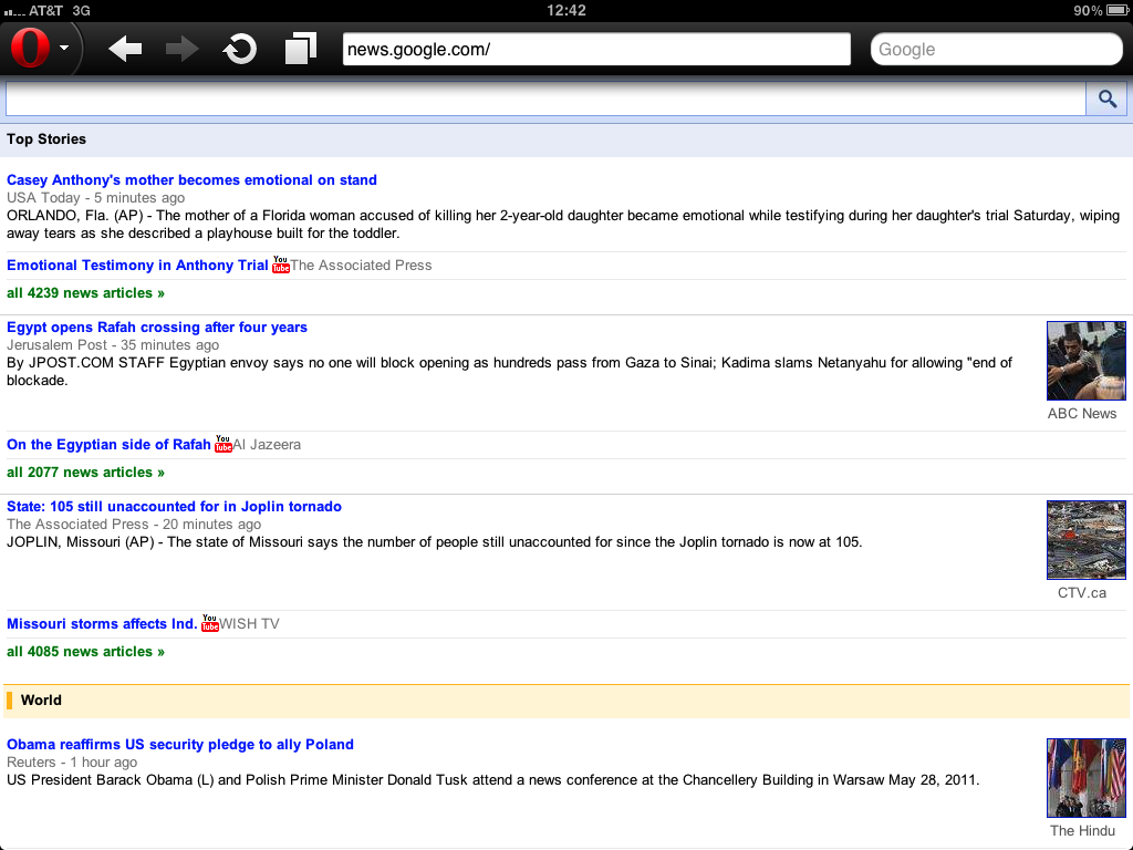 Even after toggling the Mobile View setting to the OFF position, this is the view of news.google.com until the Desktop view linked is tapped at the bottom of the Google news page.