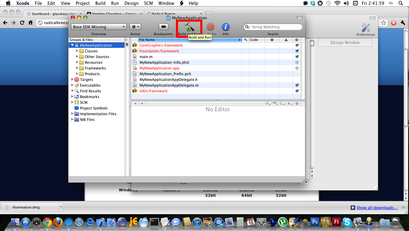 Because of silly legal restrictions, if building for an iOS device, Xcode must be used to build, so click the Build and Run button in Xcode after it is opened by Illumination Software Creator.
