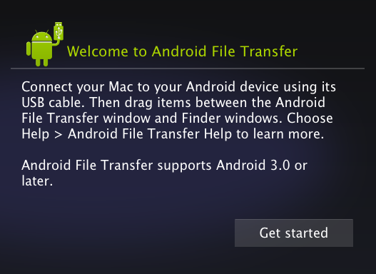 Mac OS X – Android File Transfer directions.