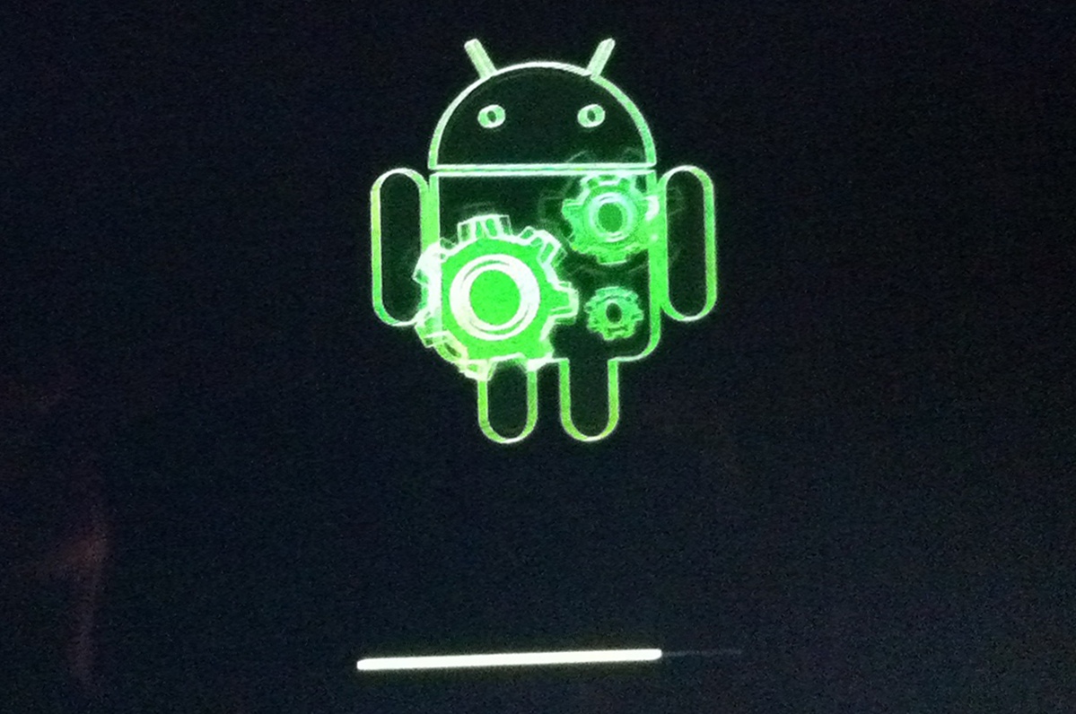 Upon downloading the new software, your Transformer will reboot and will install the needed patches and upgrades. Seen above is a shaky and quickly taken photo of an software install in progress. Note the progress bar at the bottom.