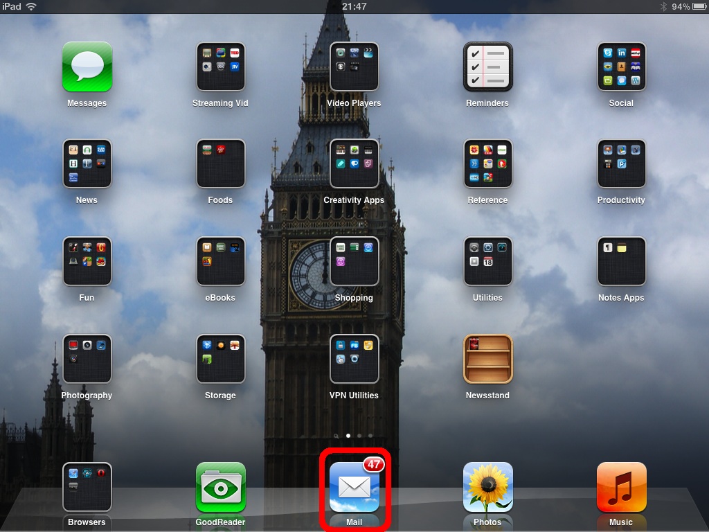 Email application highlighted in red colour.