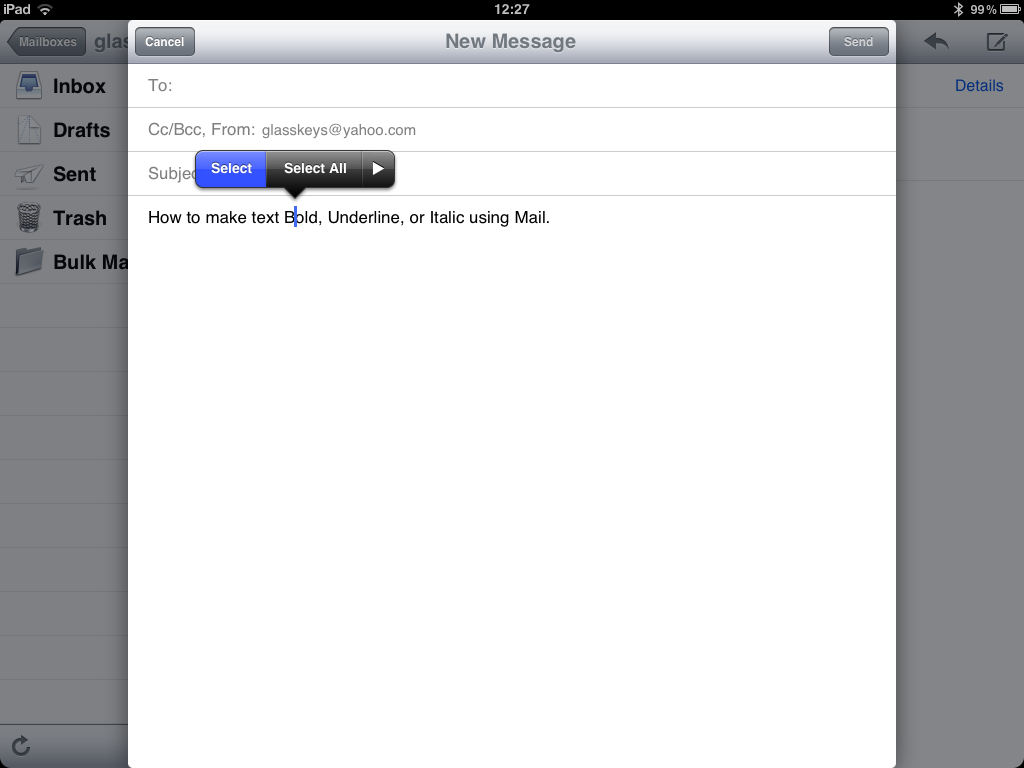 Tap and hold a word to show a selection menu and tap the select button.