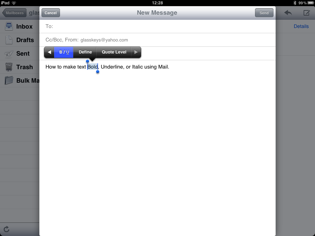 Tap the BIU button to view text formatting options.