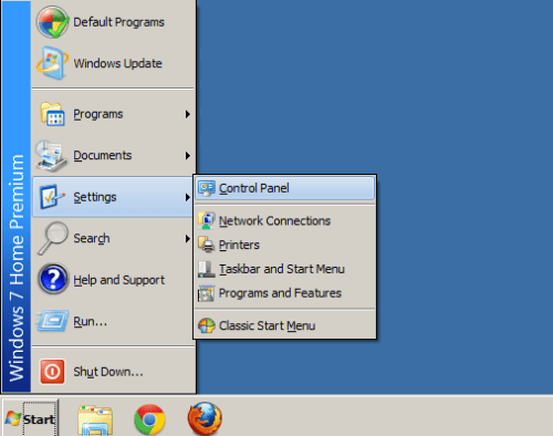 The final prerequisite oddly enough is where this tutorial actually begins – determining if your Windows system is of the 32-bit or 64-bit variety, and using this helpful bit of info to select the appropriate RAR client to match. So click the Start button, Settings, then – you guessed it – Control Panel: