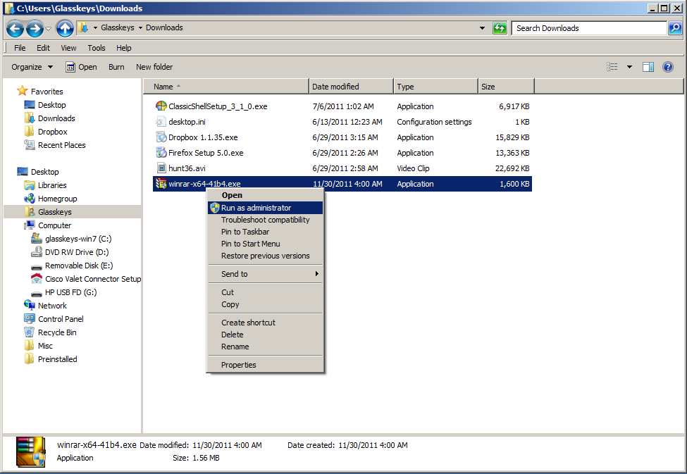 Once the download is finished, right-click and select the Run as administrator option in the shortcut menu: