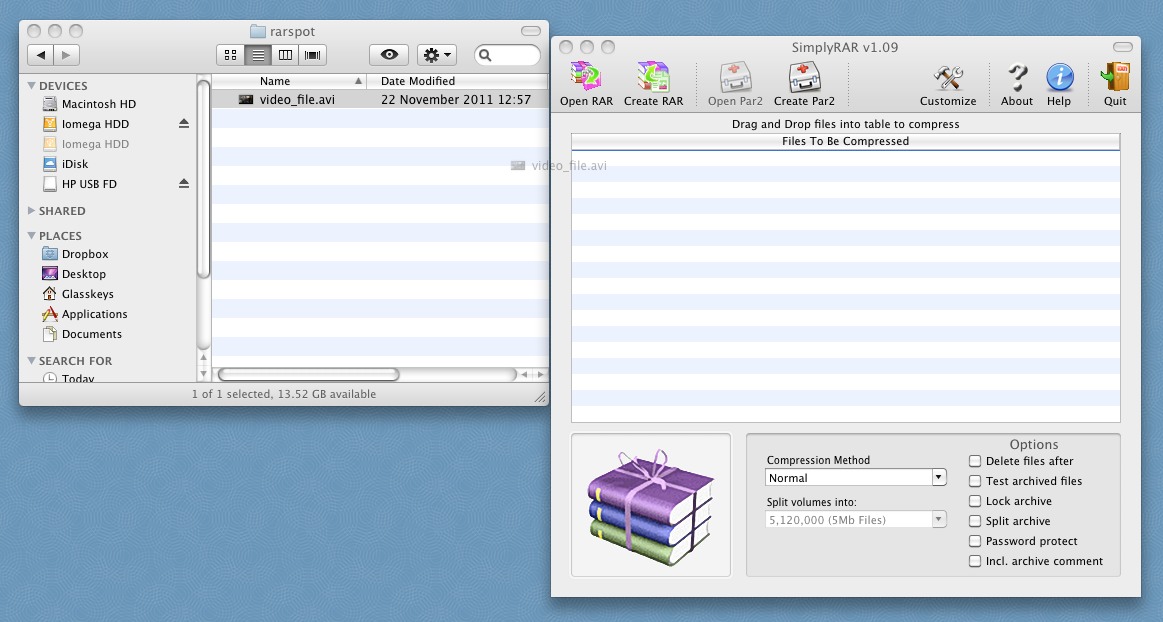 Open the SimplyRAR app and drag the video file from your Finder window to the SimplyRAR application: