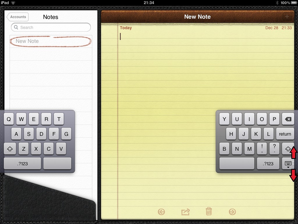 The keyboard may also be positioned higher if desired. Reverse the action to “re-join” keyboard halves.