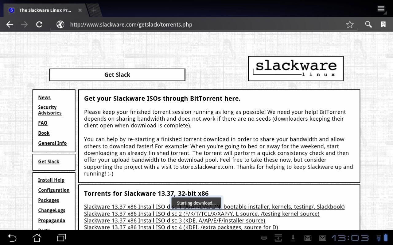 The BitTorrent link file has a .torrent extension and is saved in the /sdcard/Download folder.