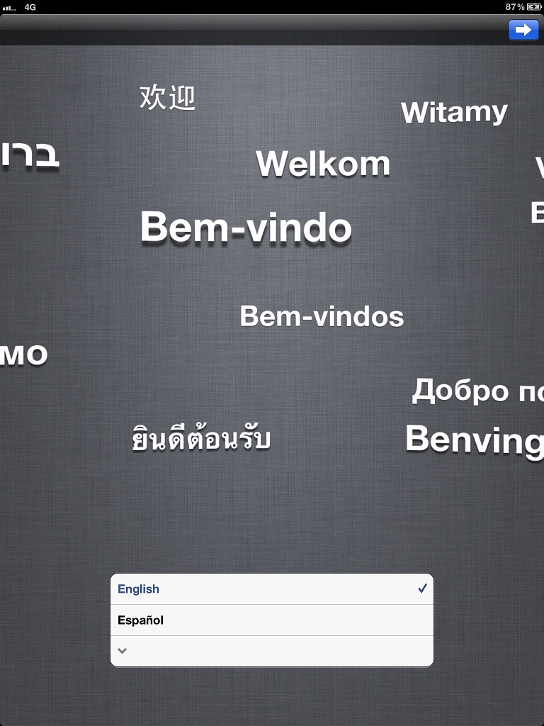 Select the language on the animated “welcome” screen.